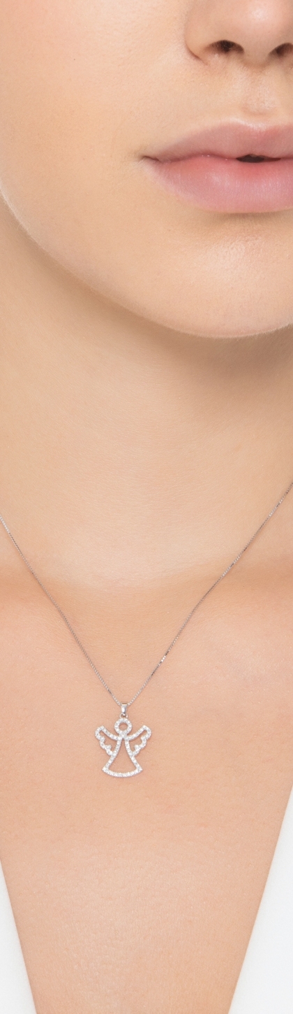 Collar en oro blanco 18 quilates con colgante de ángel en diamantes