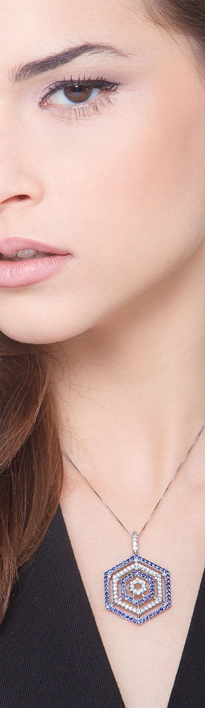Collar en oro blanco 18 quilates con zafiros azules y diamantes