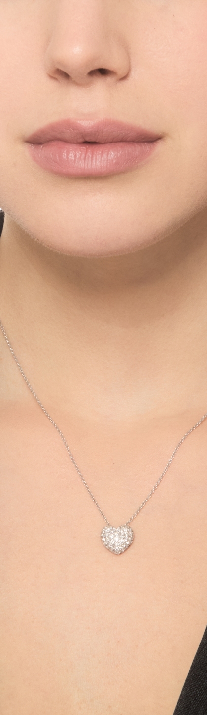 Collar en oro blanco 18k con colgante corazón pavé en diamantes
