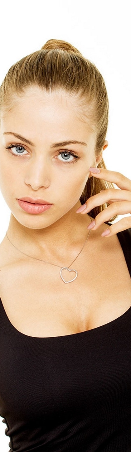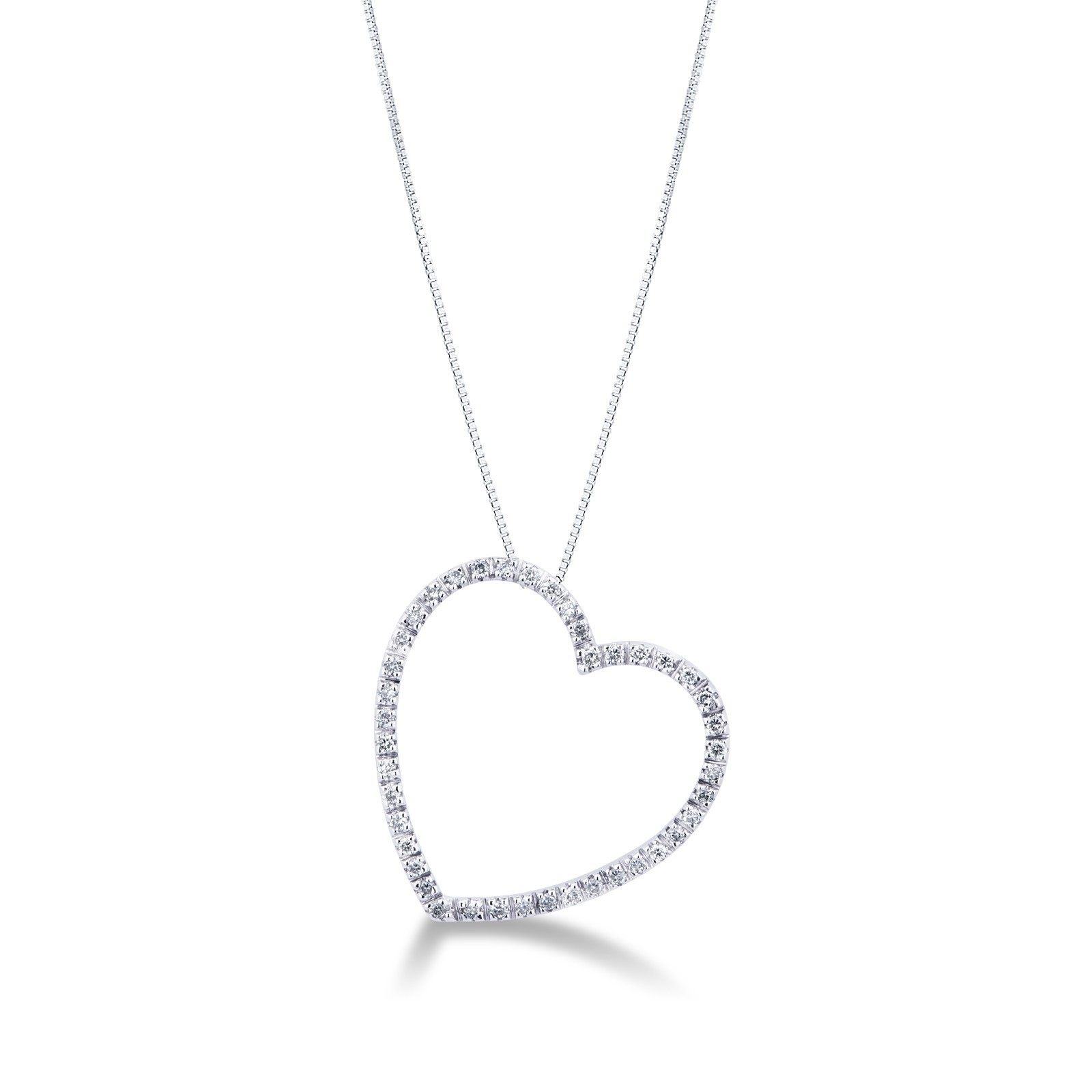 Collar en oro blanco 18k con colgante corazón y diamantes