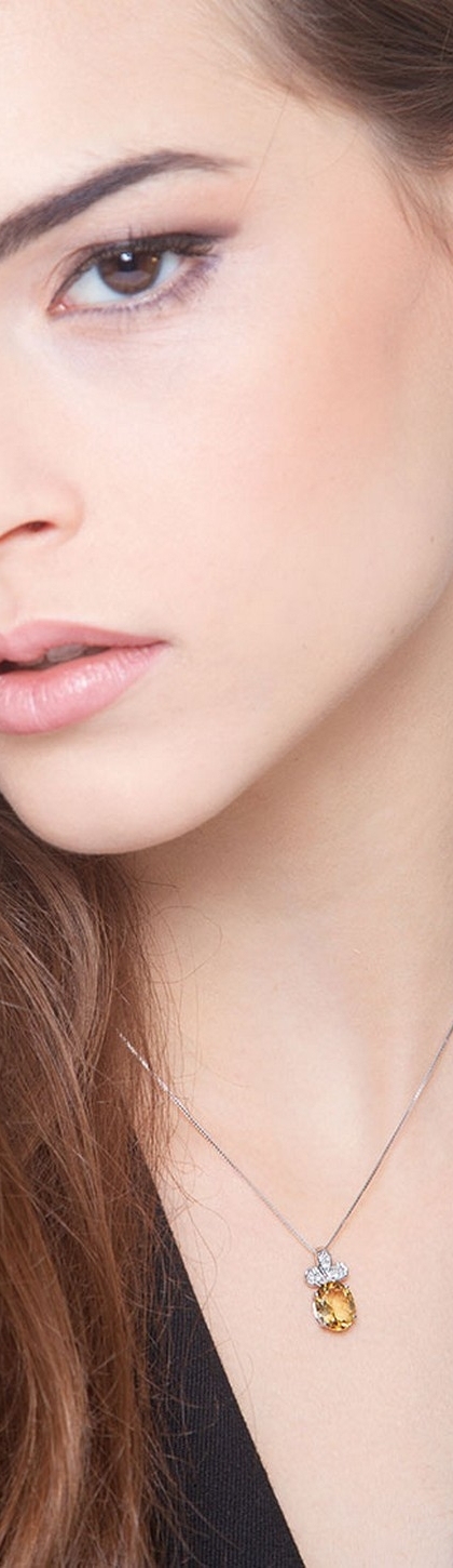 Collar en Oro Blanco 18k con Colgante de Citrino y Diamantes