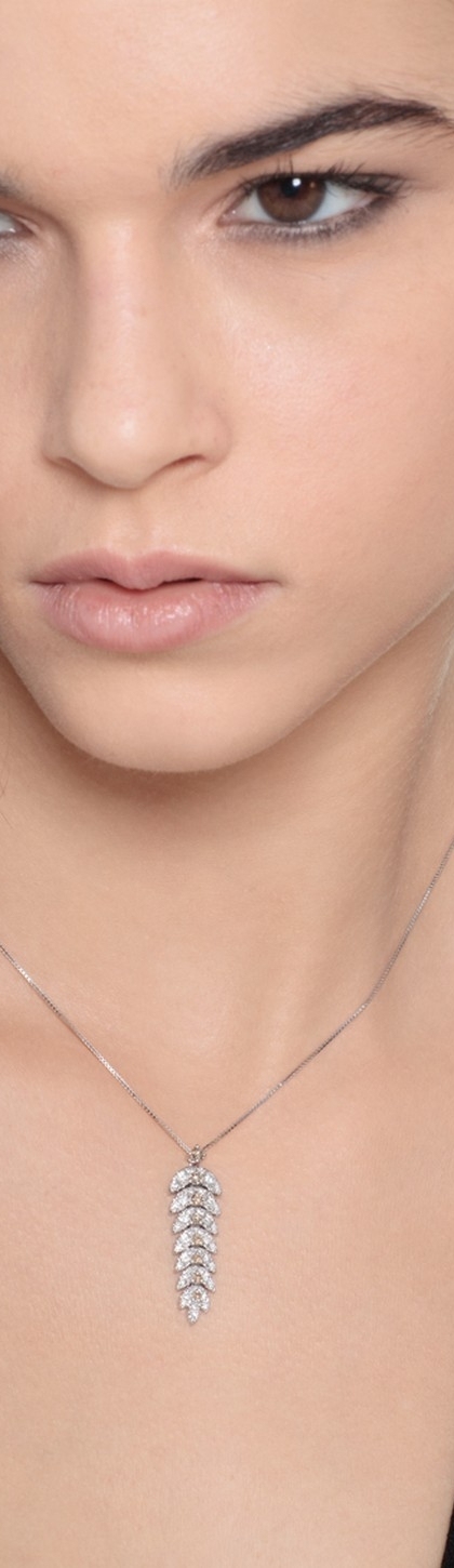 Collar en Oro Blanco 18k con Colgante de Pluma y Diamantes Brillantes