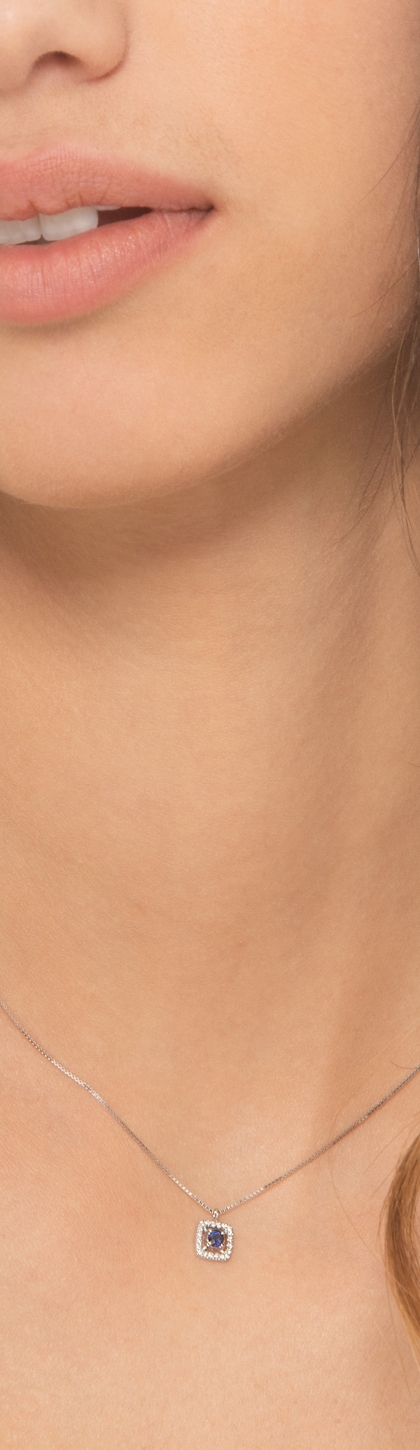 Collar en oro blanco 18k con colgante de zafiro azul y diamantes