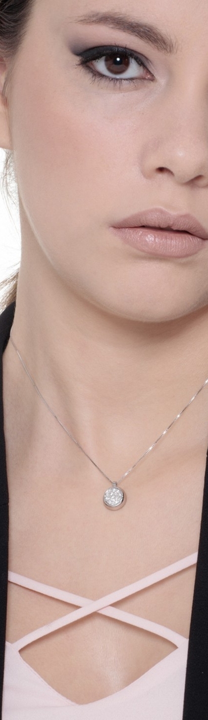 Collar en oro blanco 18k con colgante redondo pavé de diamantes