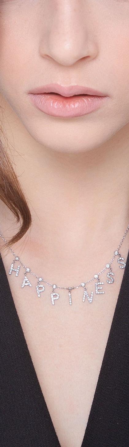 Collar en Oro Blanco 18k con la Palabra HAPPINESS y diamantes