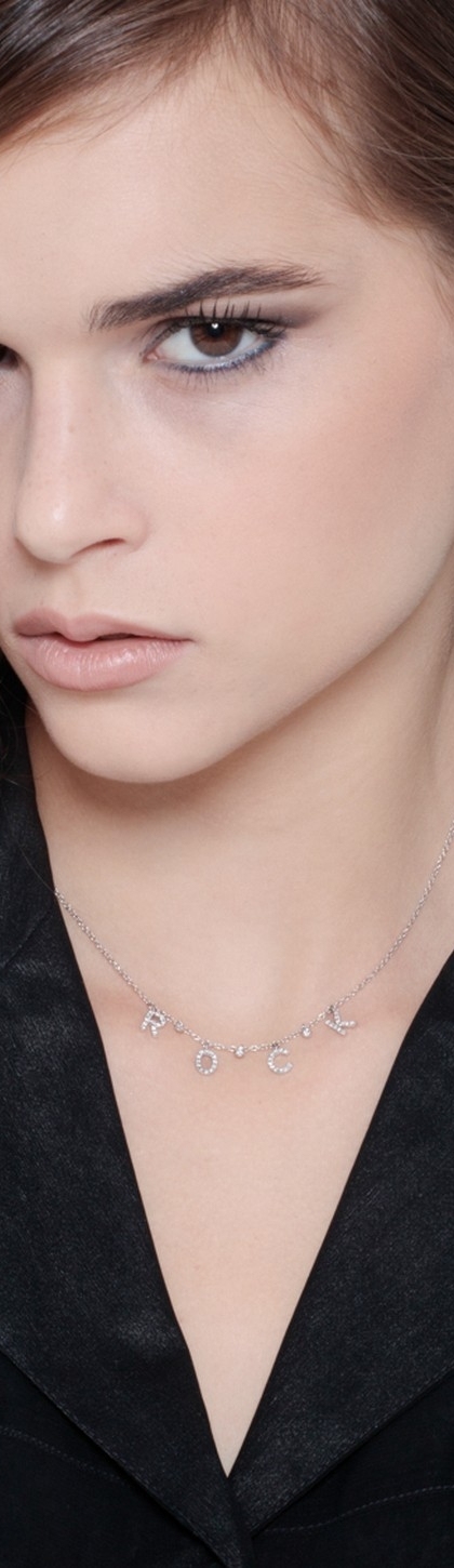 Collar en oro blanco 18k con la palabra ROCK de diamantes