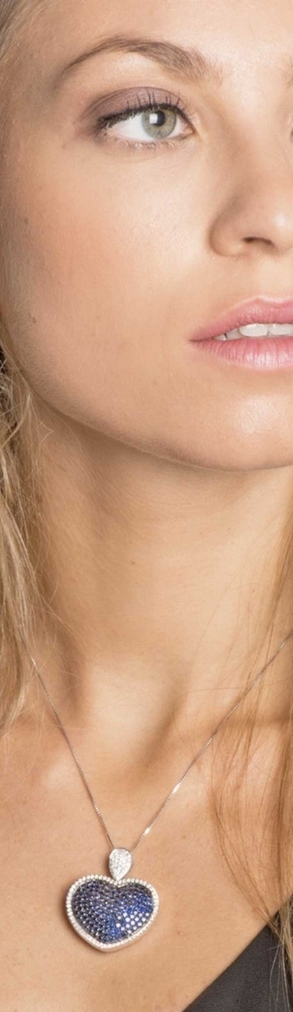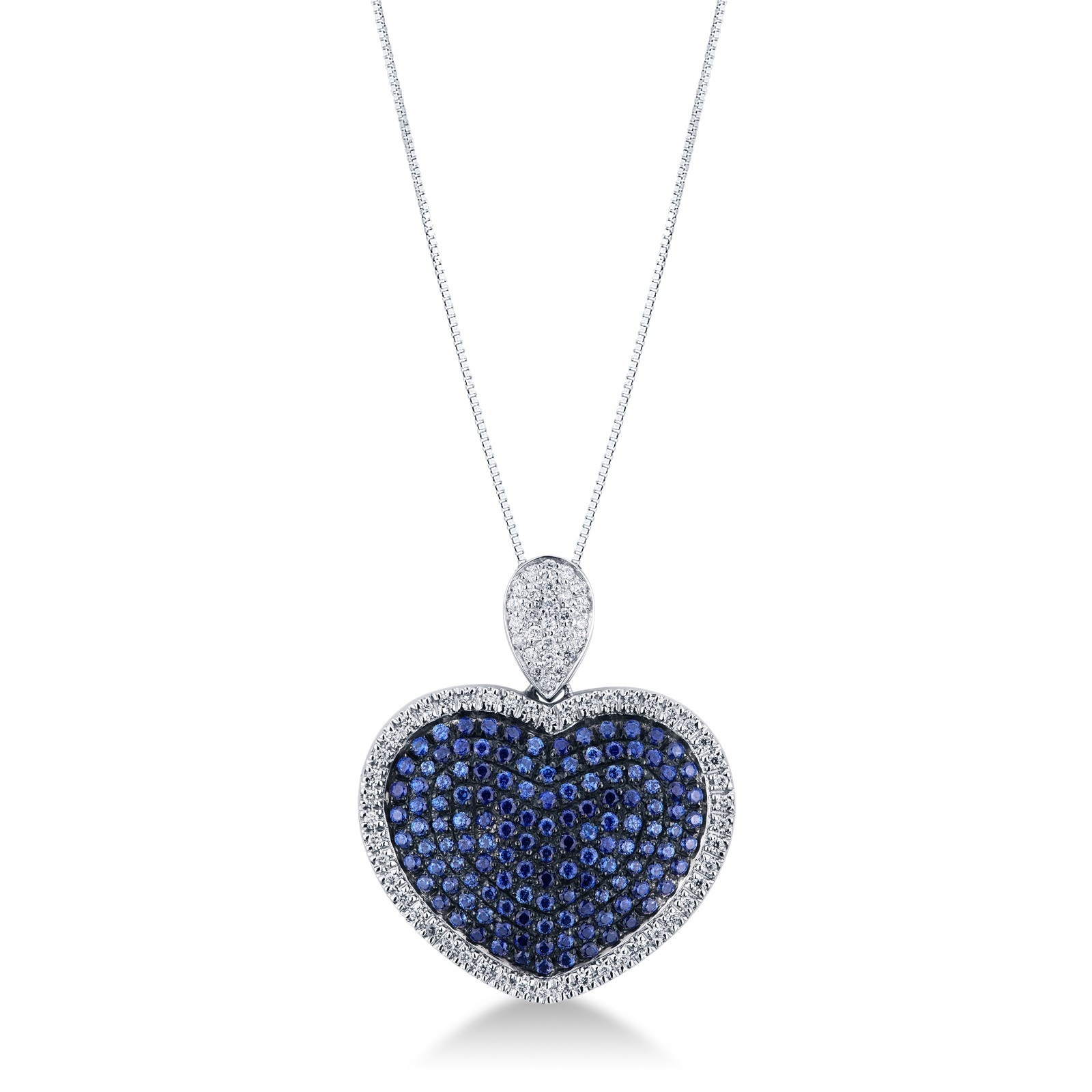 Collar en Oro Blanco 18k con Pavé de Zafiros Azules y Diamantes