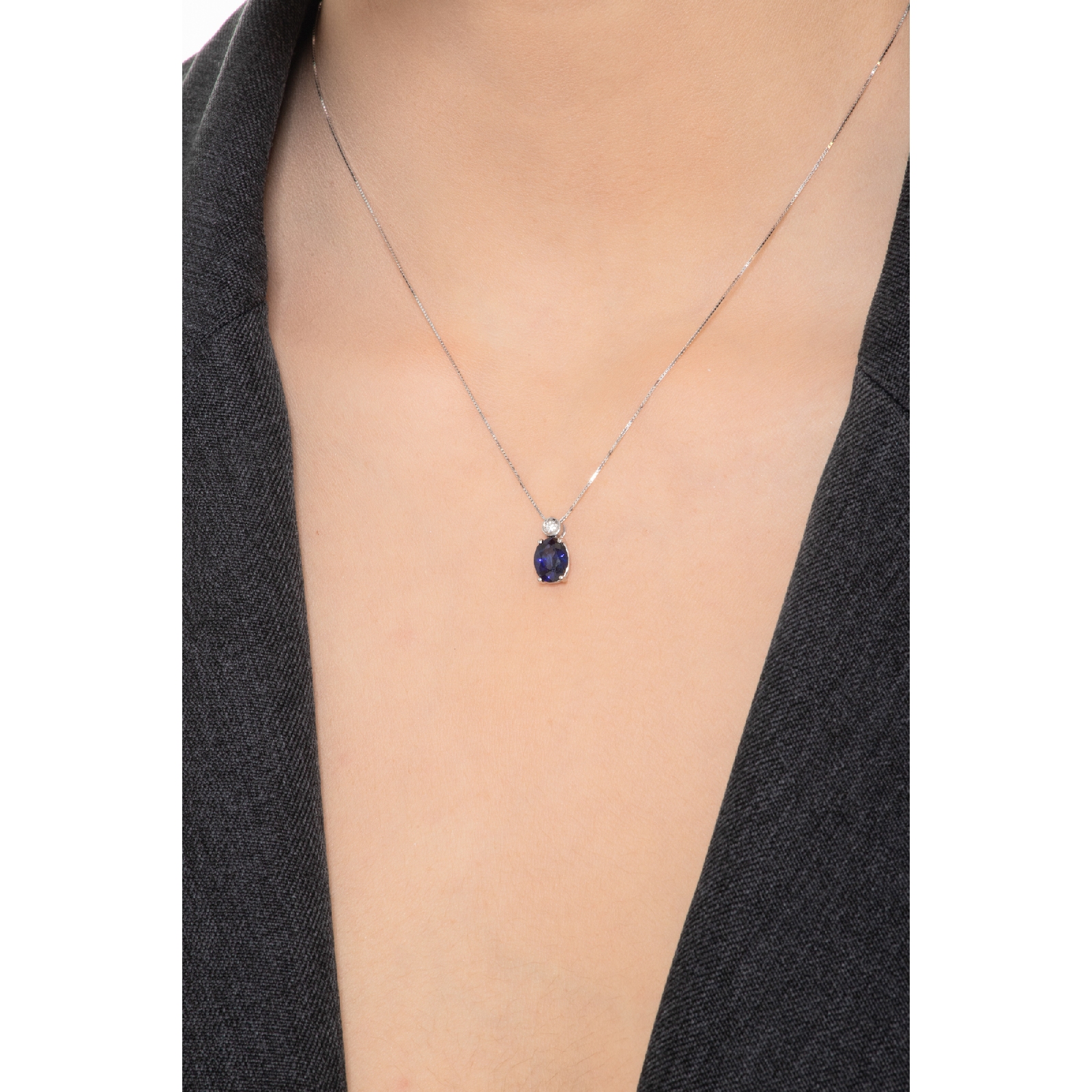 Collar en oro blanco 18k con zafiro azul y diamante