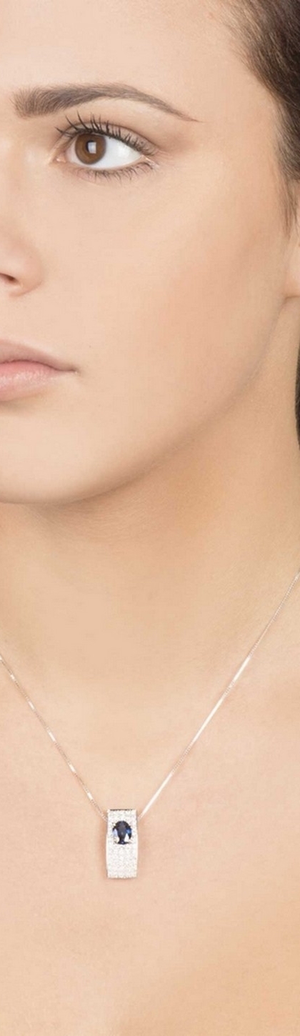 Collar flor zafiros azules y diamantes oro blanco 18k