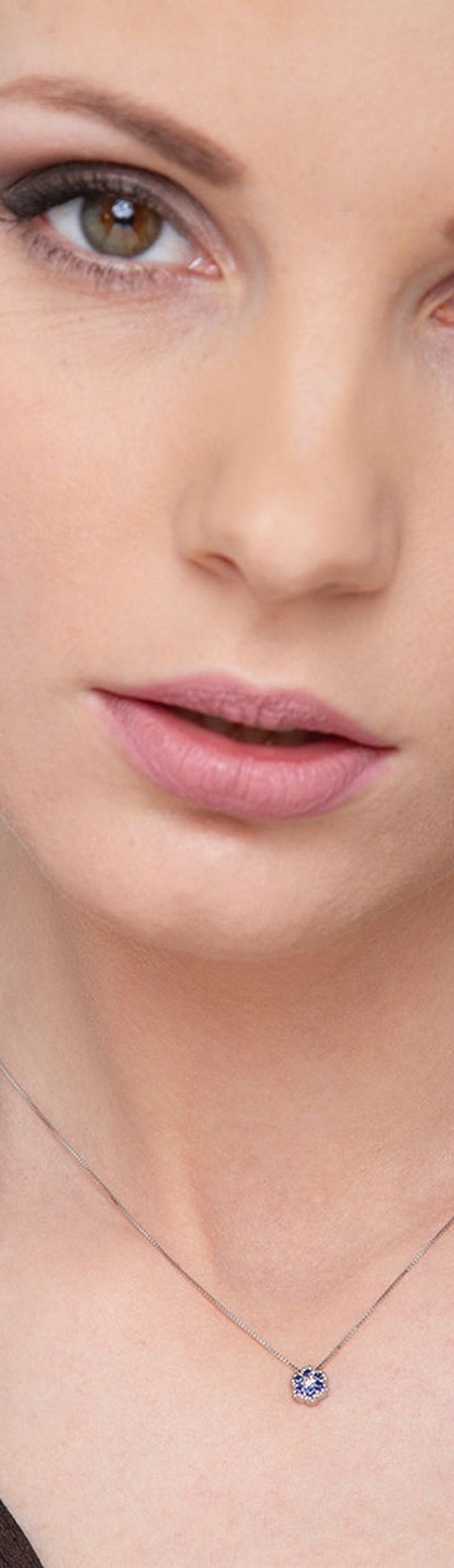 Collar en oro blanco 18k flor diamante y zafiros azules