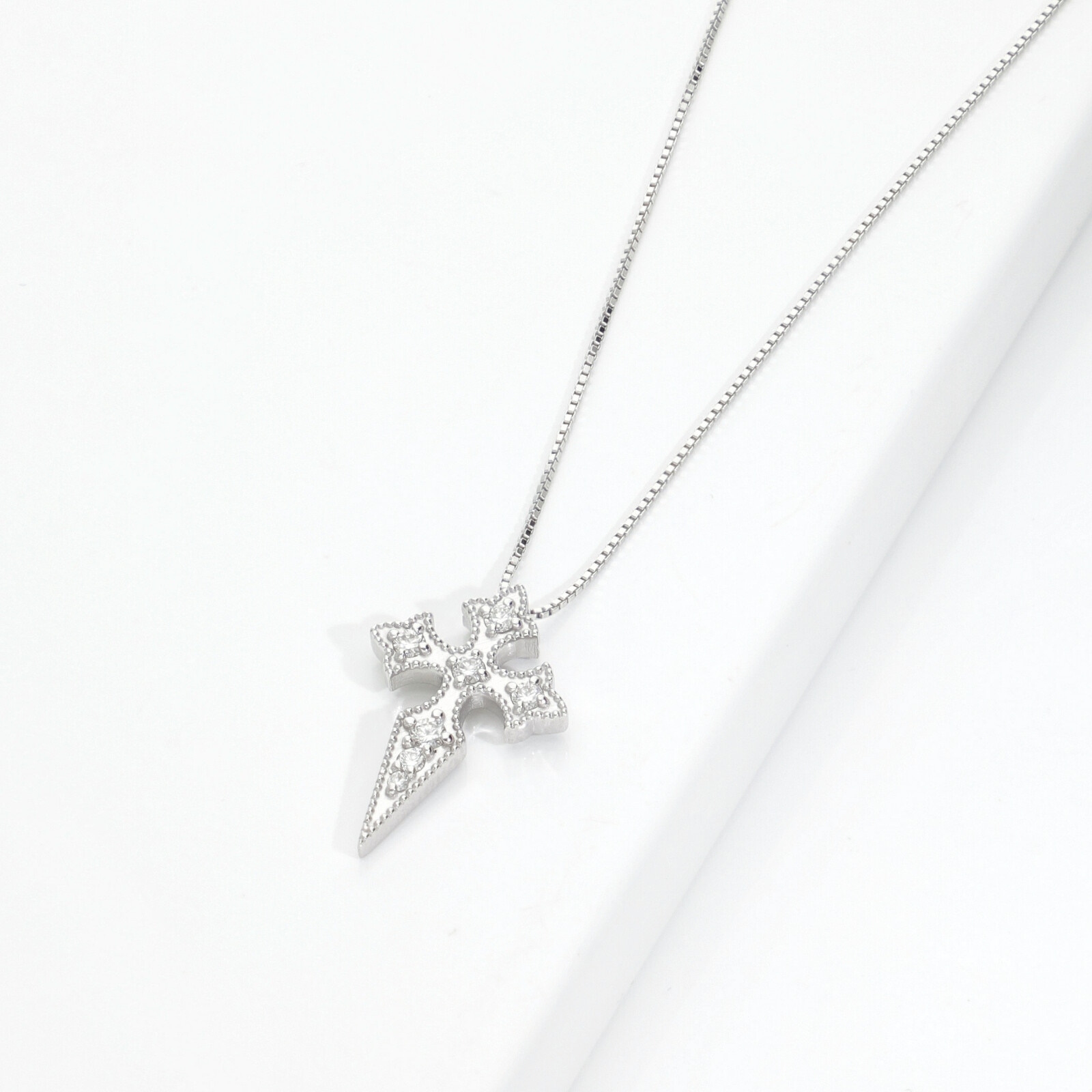 Collar en oro blanco 750 con cruz de diamantes