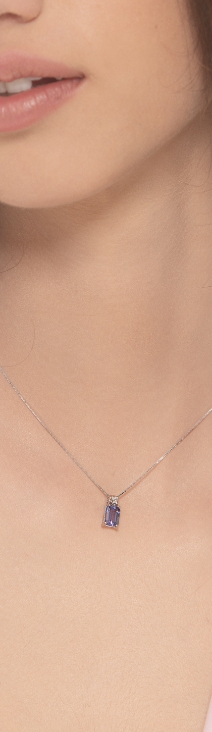 Collar en oro blanco 750 con tanzanita rectangular y diamante