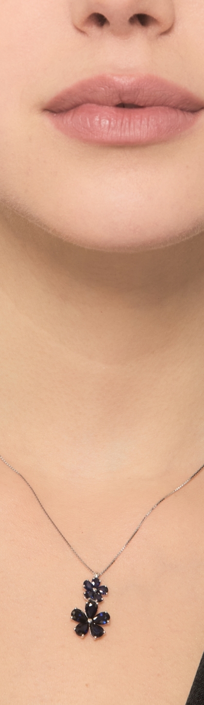 Collar en oro blanco de 18k con dos flores de zafiros azules
