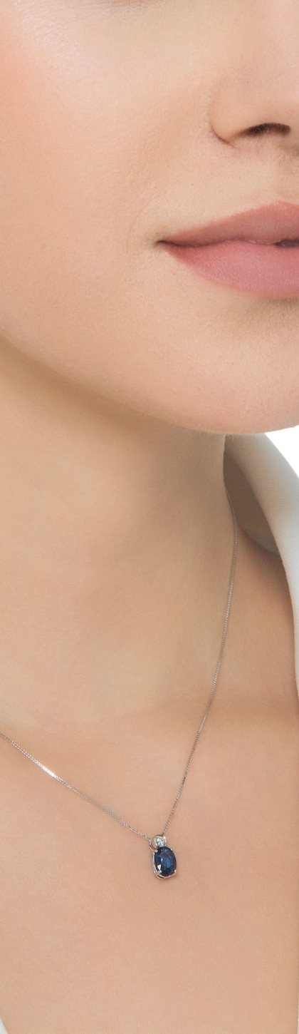 Gargantilla oro blanco 18k con colgante ovalado pavé