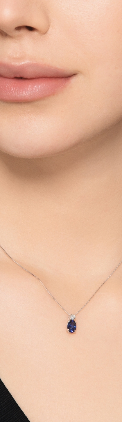 Collar en oro blanco de 18k con zafiro azul