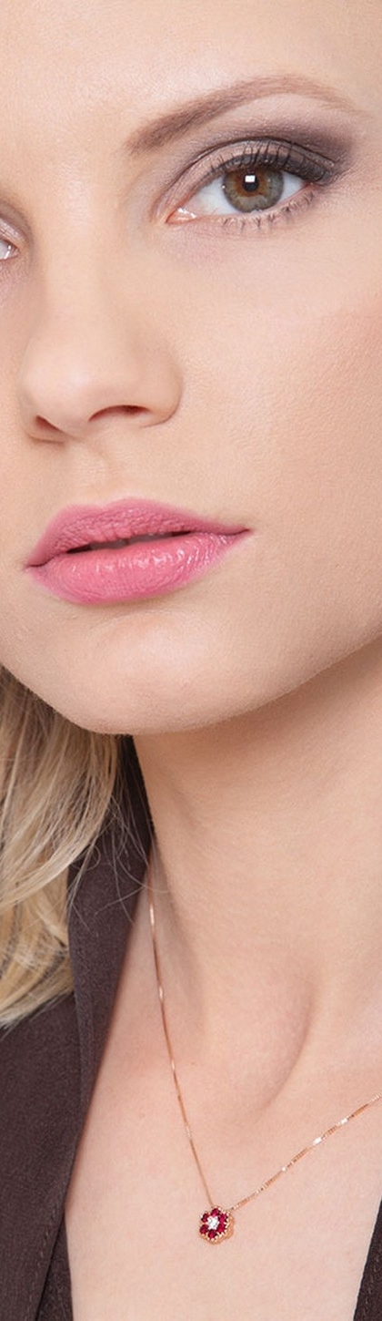 Collar en oro rosa 18 quilates con colgante en forma de flor de 7 mm