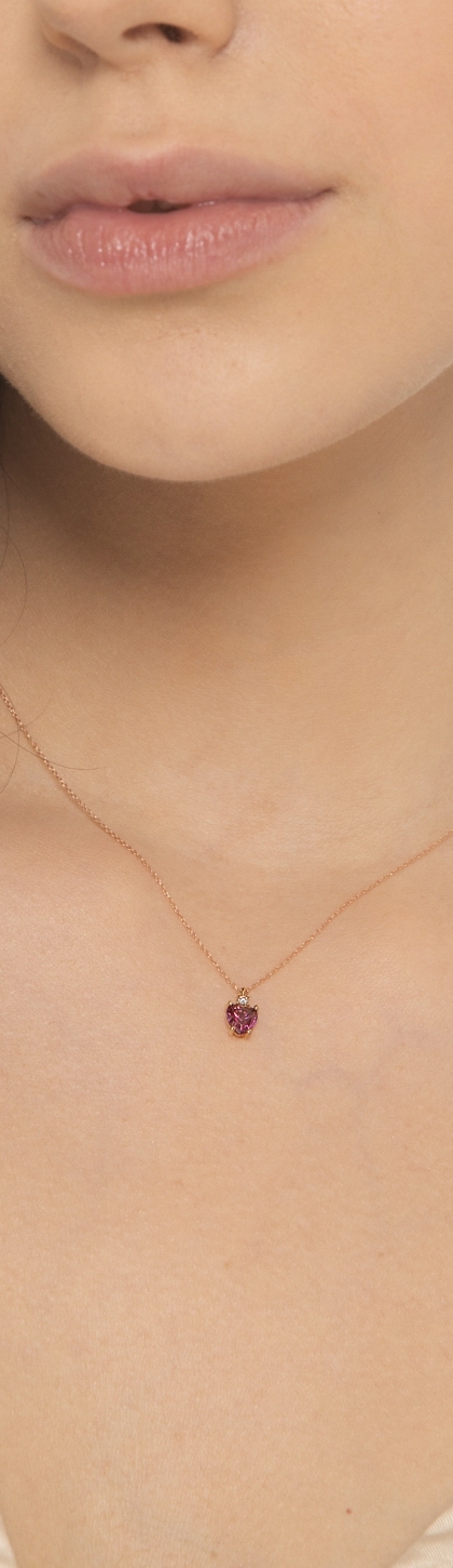 Collar en oro rosa con colgante corazón y circonitas