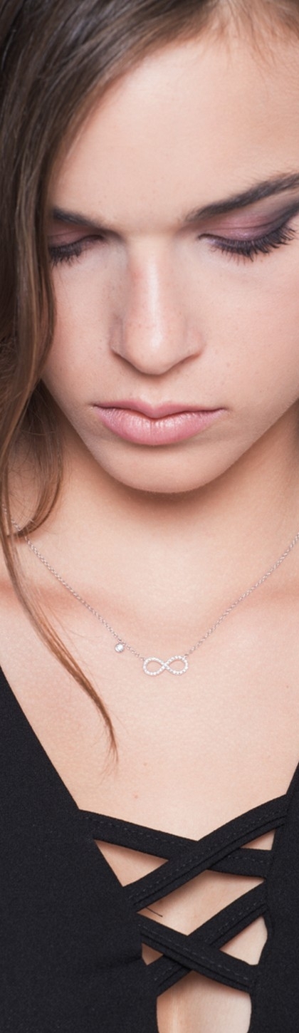 Collar en oro blanco 18k con colgante de niña en diamantes