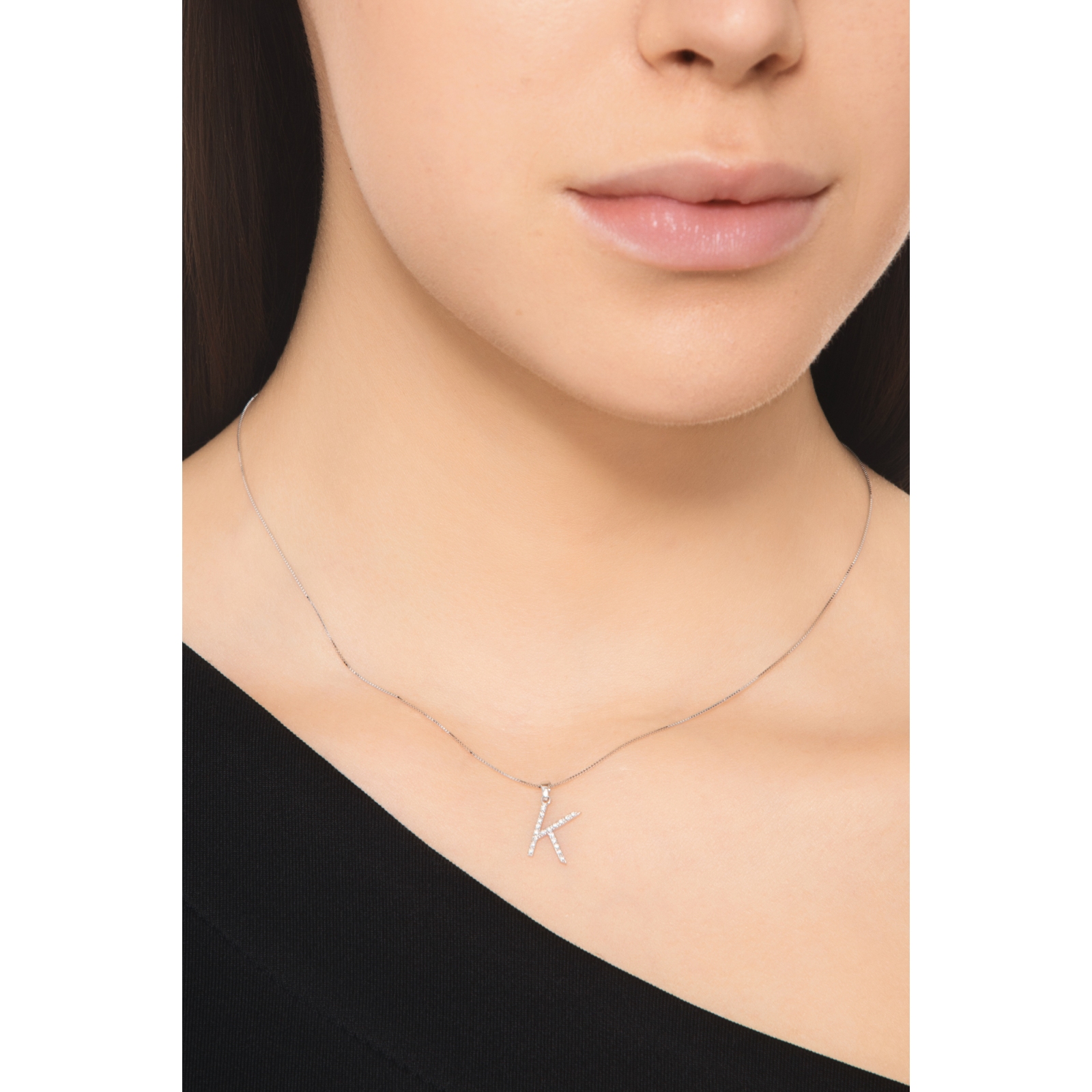 Collar en Oro Blanco 18k con Flor y Diamantes Brillantes