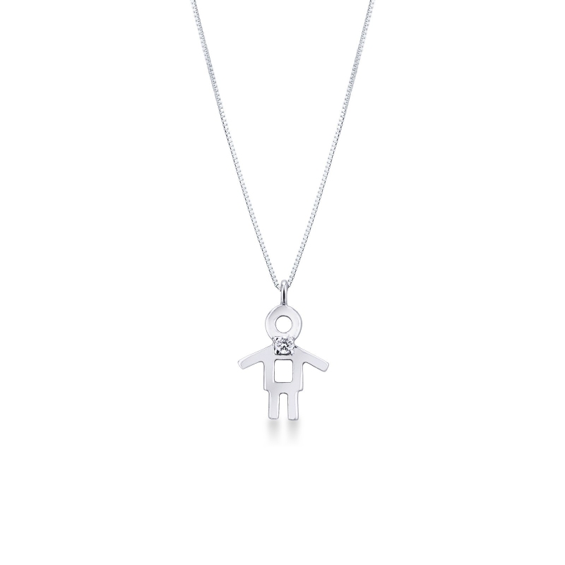 Collar niño oro blanco 18k con diamante brillante