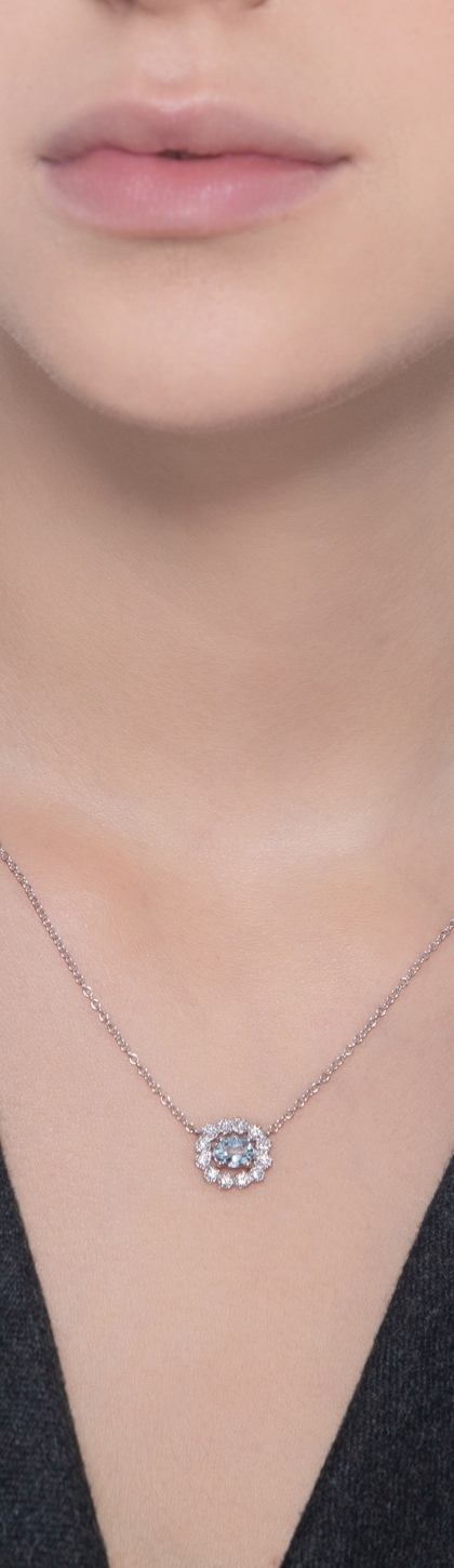 Collar oro 18k aguamarina ovalada y diamantes