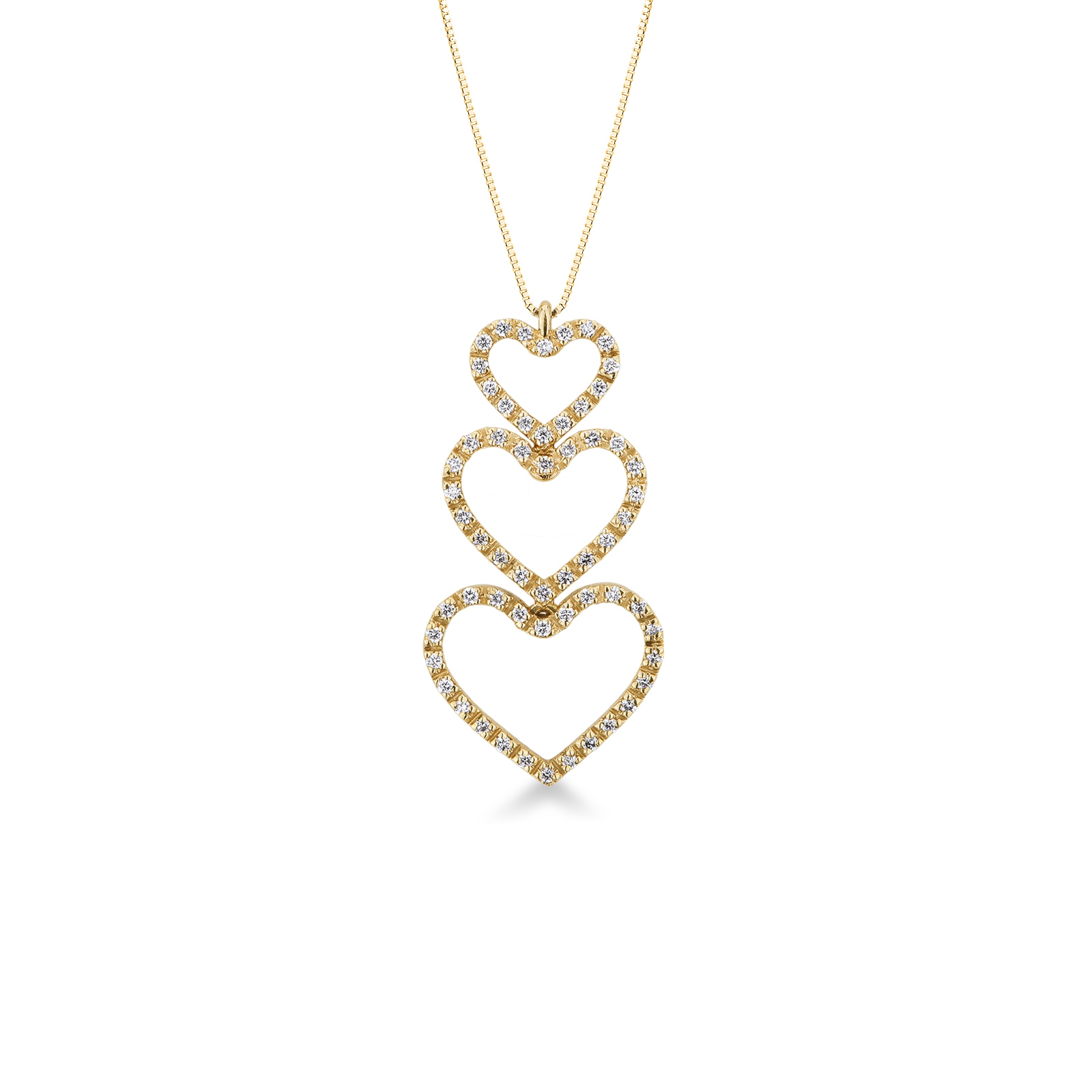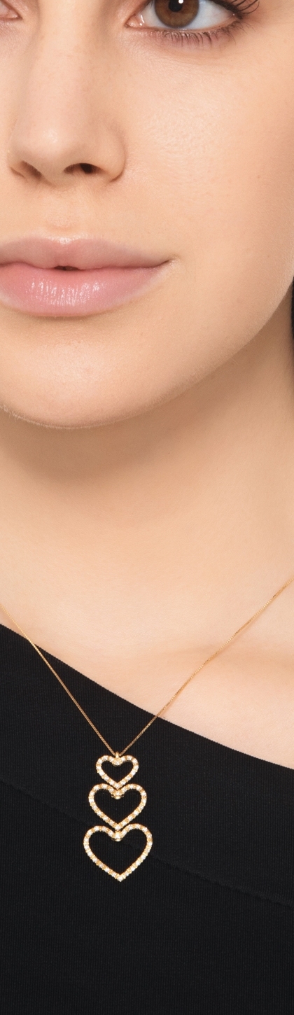 Collar oro amarillo 18k con tres corazones con diamantes