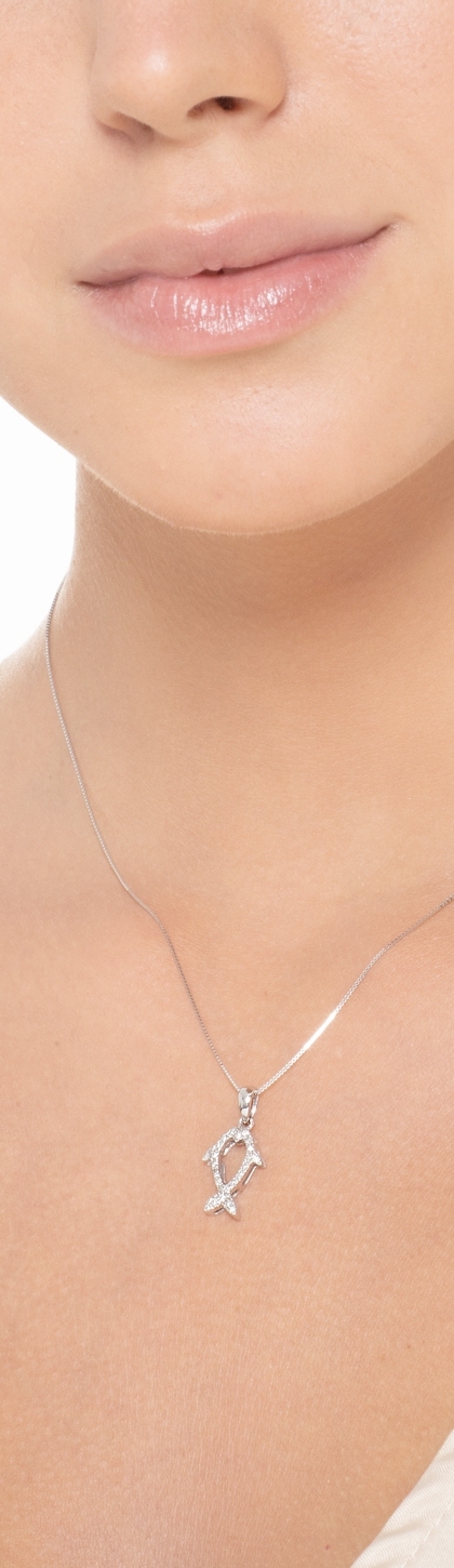 Collar oro blanco 18 quilates con colgante pez en diamantes