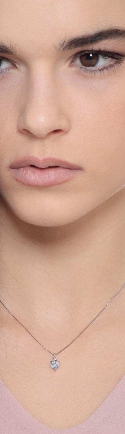 Collar oro blanco 18k círculo aguamarina ovalada y diamantes