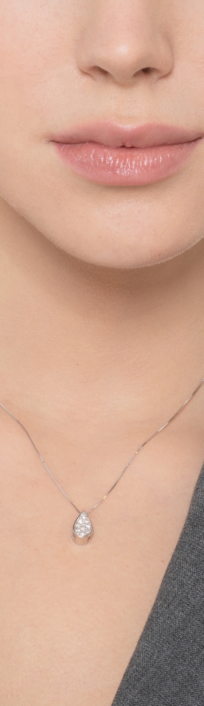 Collar en oro blanco 18k corazón diamantes y zafiros azules