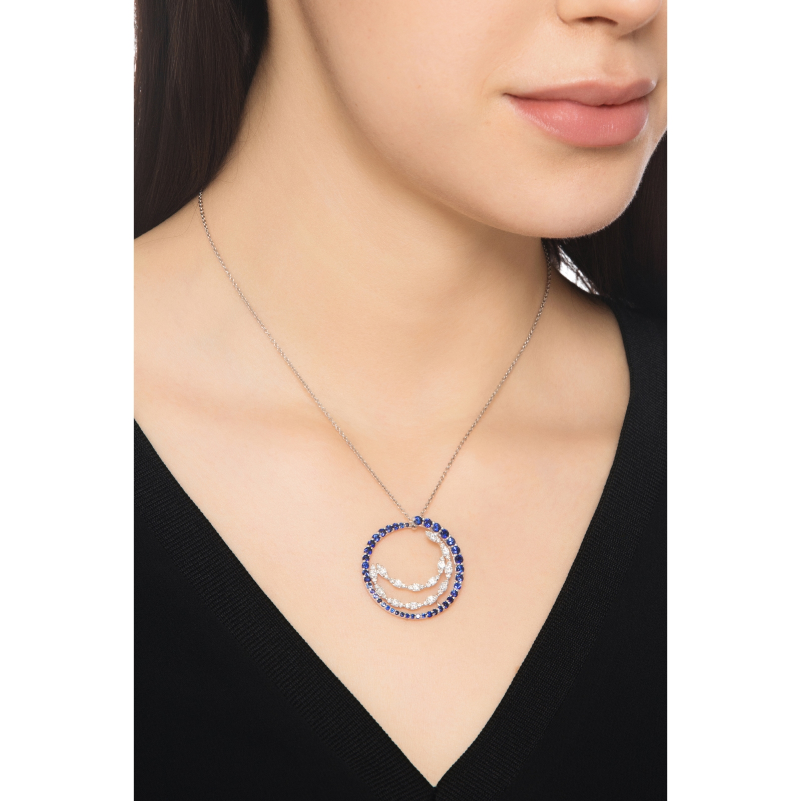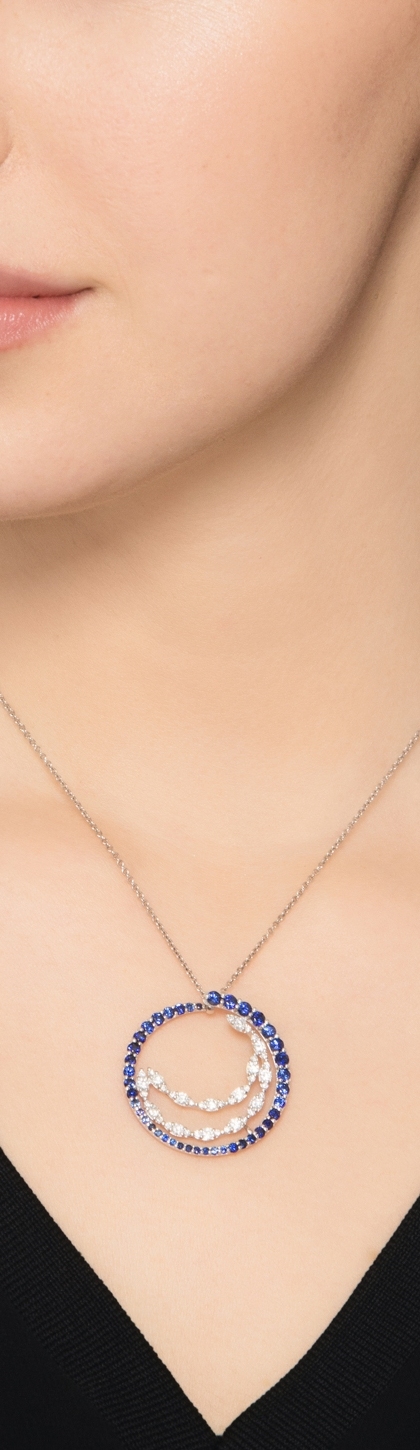 Collar oro blanco 18k con colgante de zafiros azules y diamantes