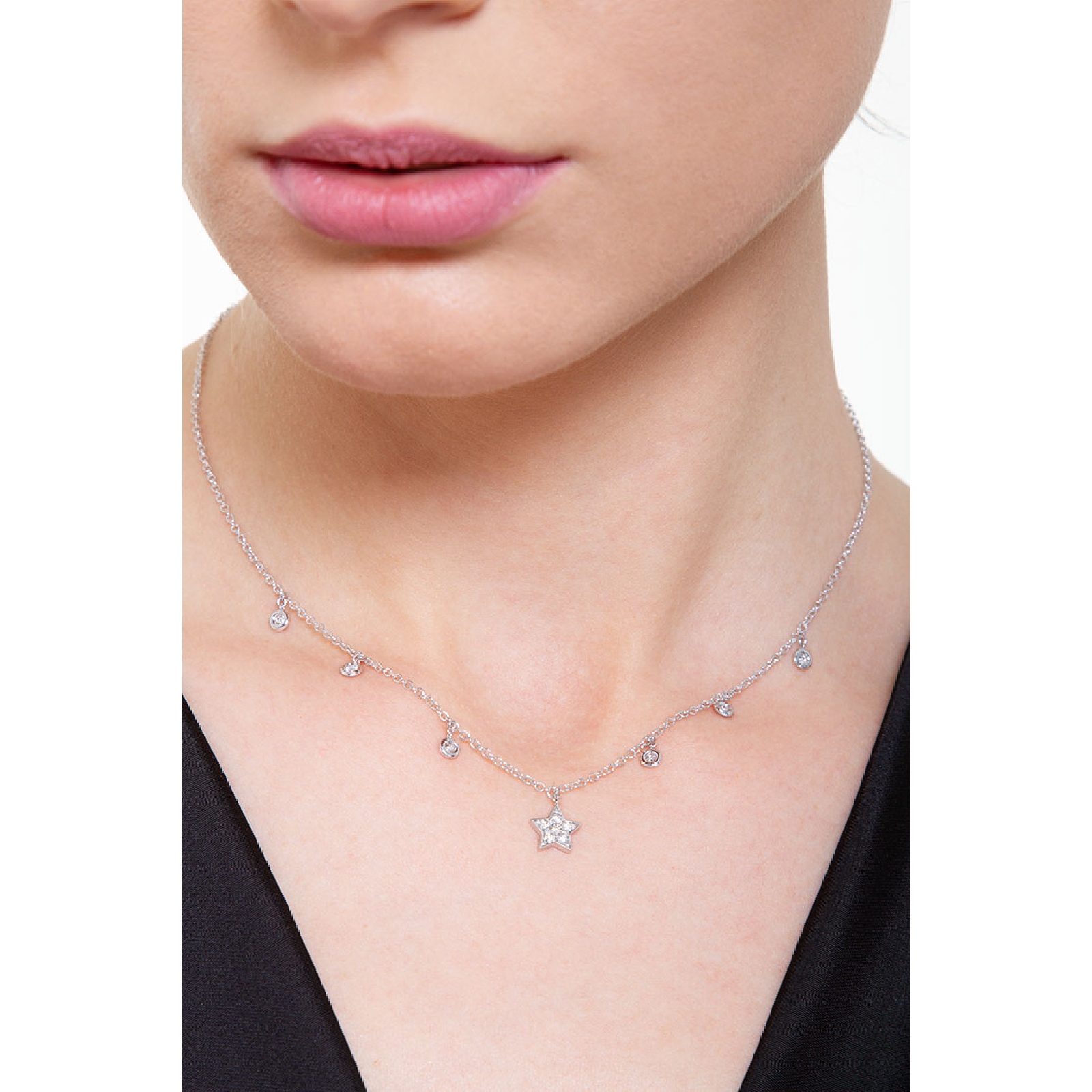 Collar oro blanco 18K con colgante corazón zafiros azules