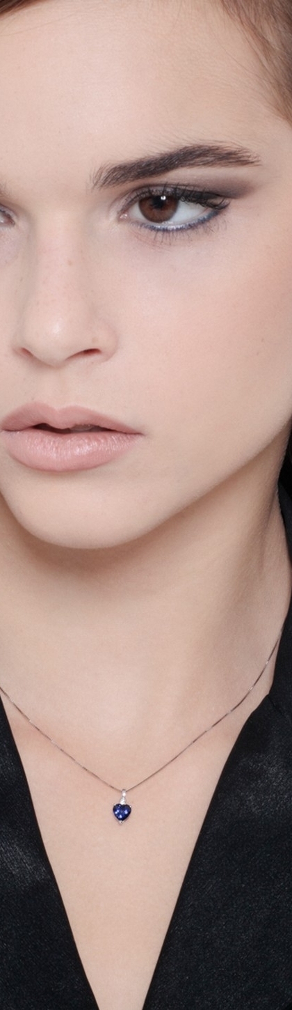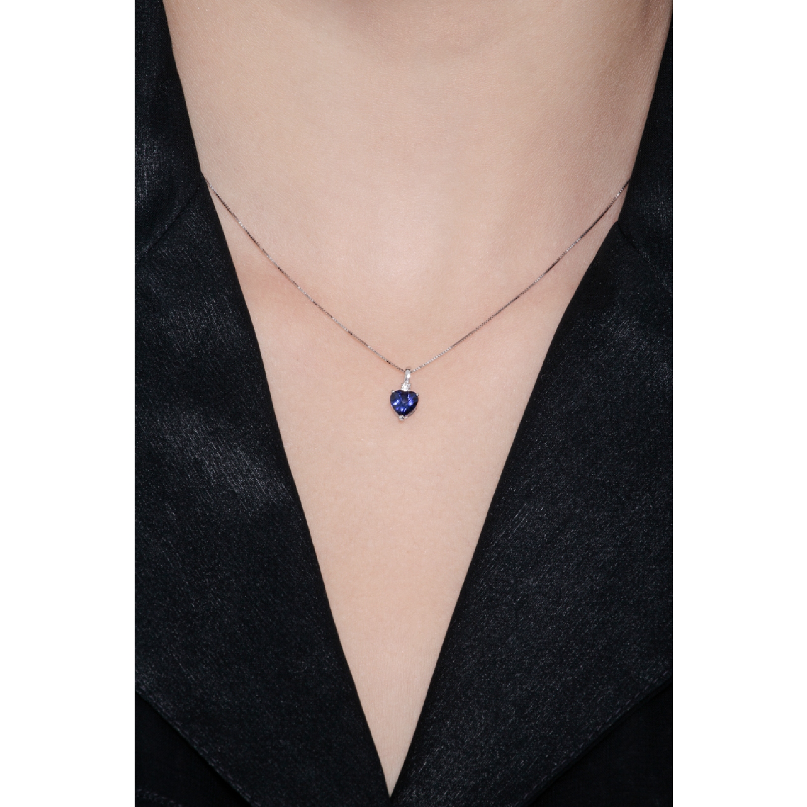 Collar oro blanco 18k corazón zafiro azul y diamante