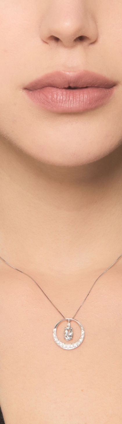 Collar oro blanco 18k círculo aguamarina ovalada y diamantes