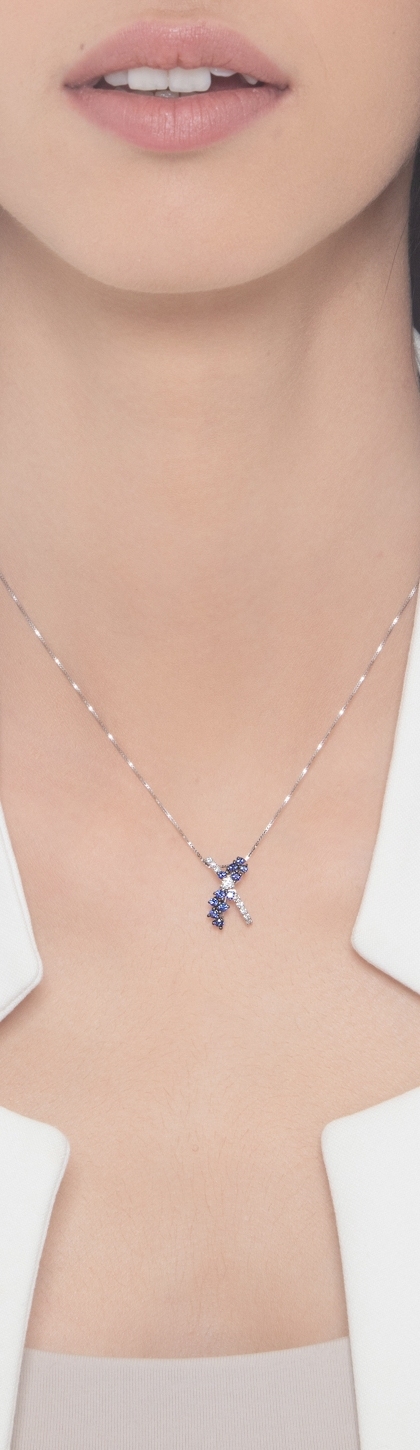 Collar oro blanco 18k cruz con zafiros azules y diamantes