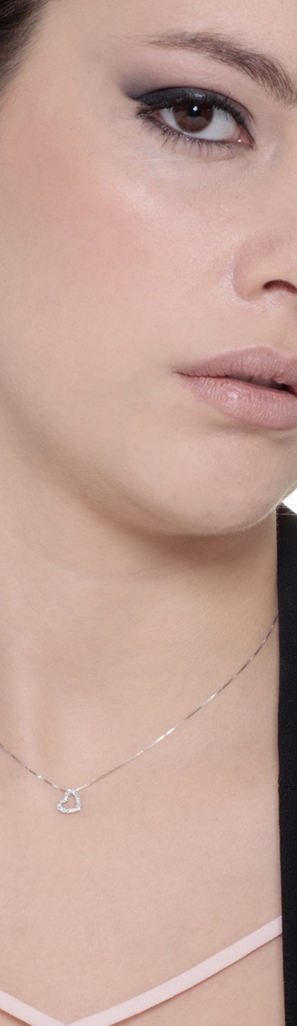 Collar oro blanco 18k en forma de corazón con diamantes