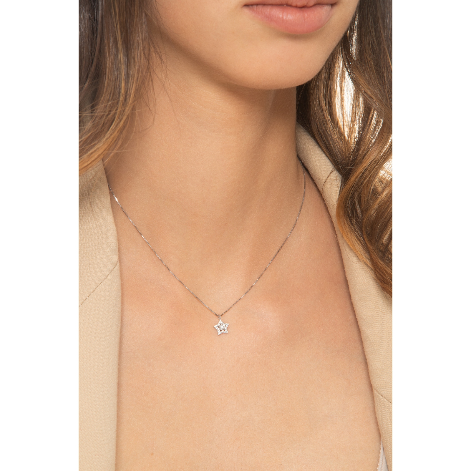 Collar oro blanco 18k estrella diamantes