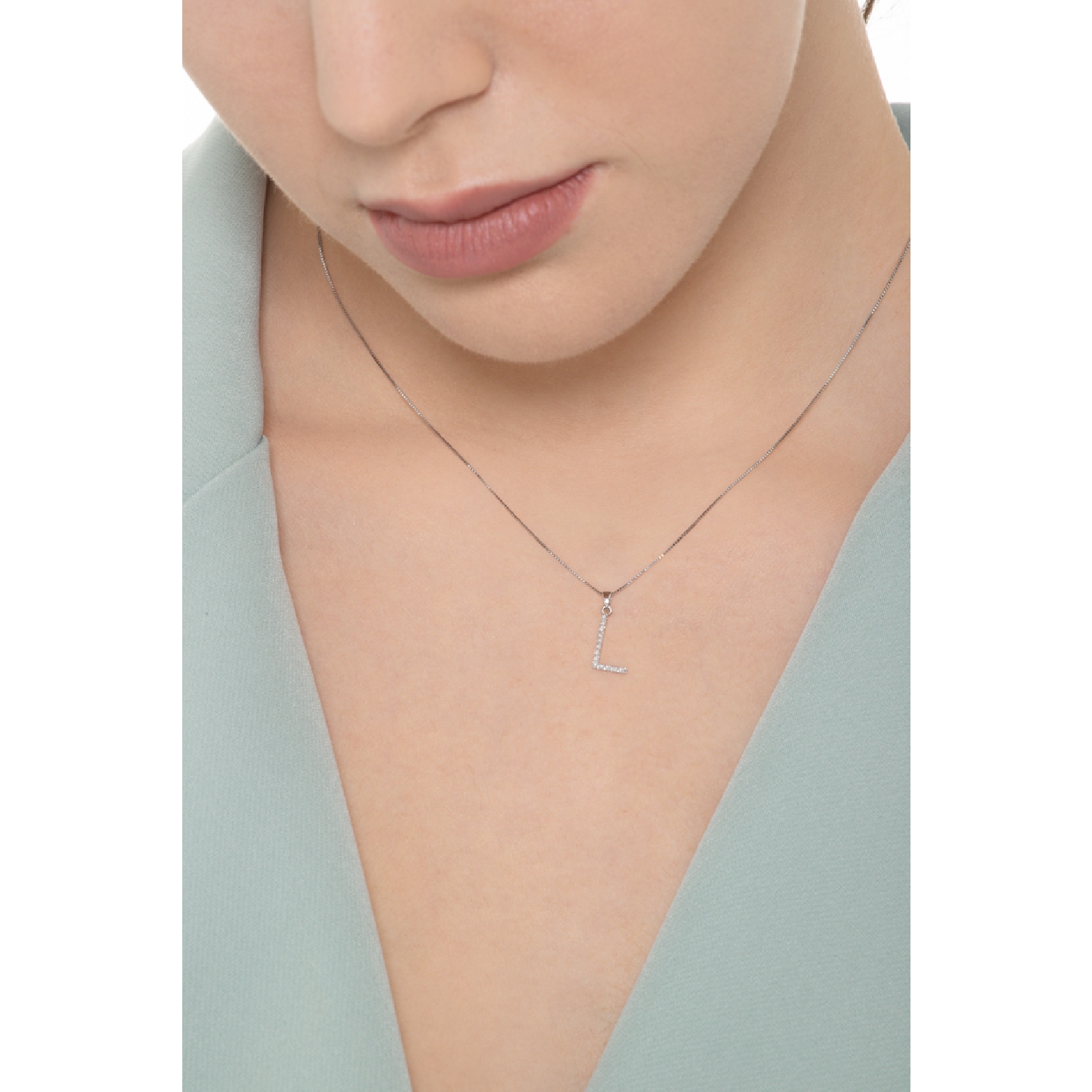 Collar en oro blanco 18k con colgante de trebol y diamantes