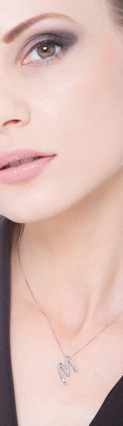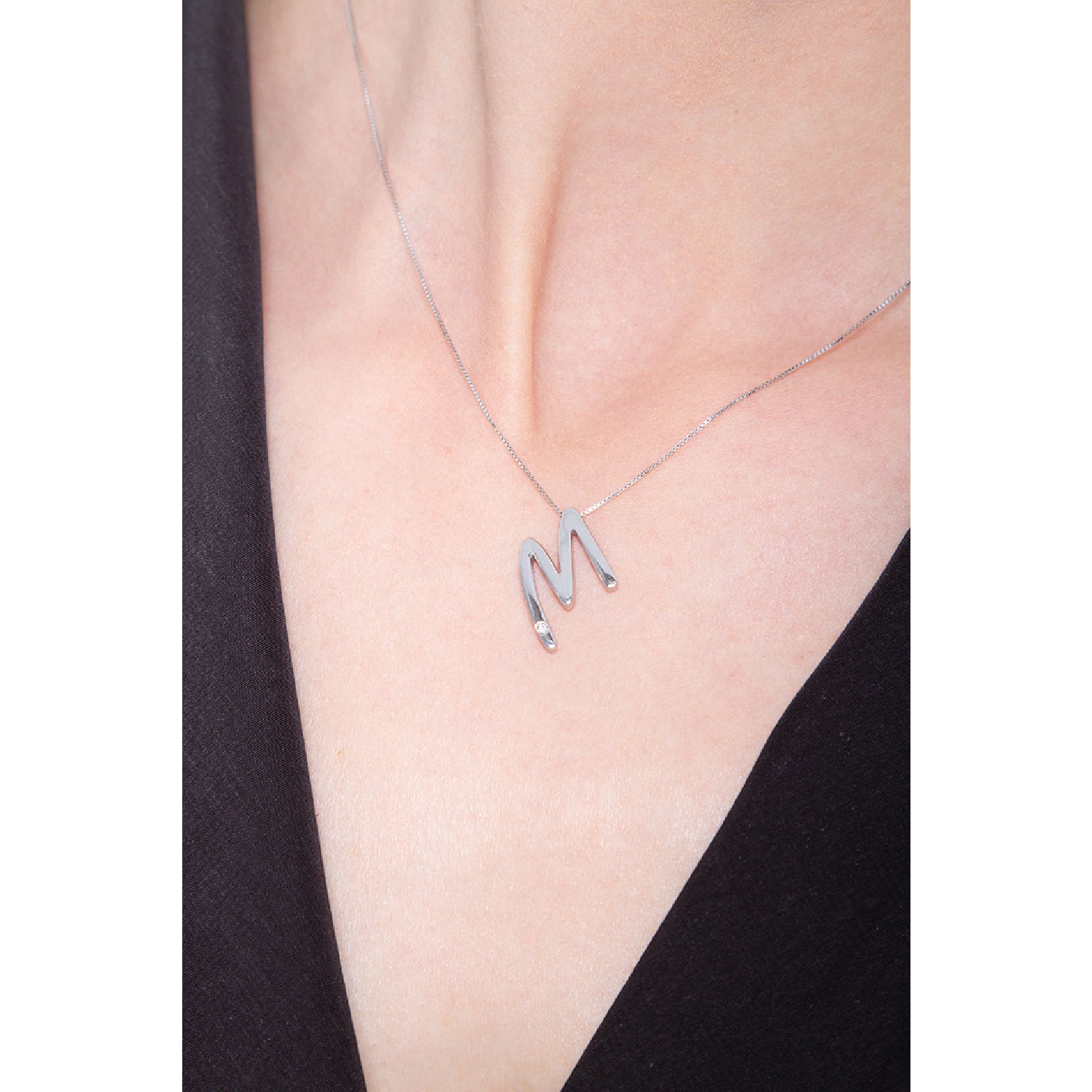 Collar oro blanco 18k letra M diamante