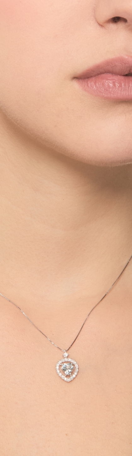 Collar oro blanco 18kt con colgante aquamarina corazón y diamantes