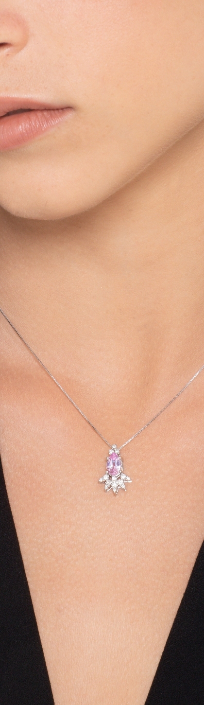 Collar oro blanco 750 con zafiro rosa y diamantes