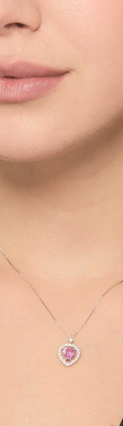 Collar en oro blanco 18k con colgante de corazon en diamantes