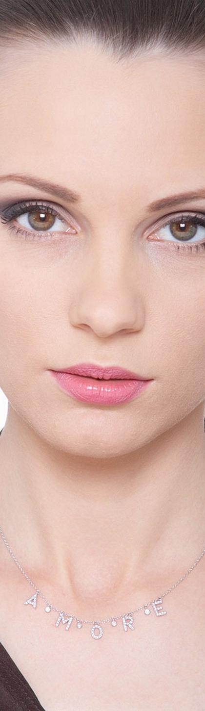 Collar oro blanco de 18k con el nombre AMORE