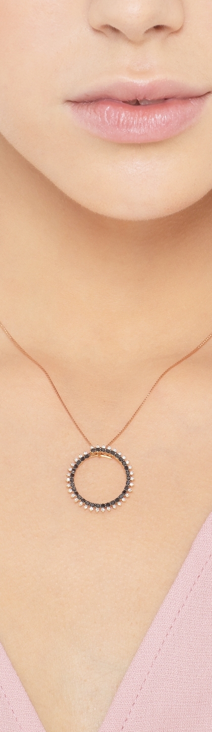 Collar oro rosa de 18k con colgante círculo con diamantes negros