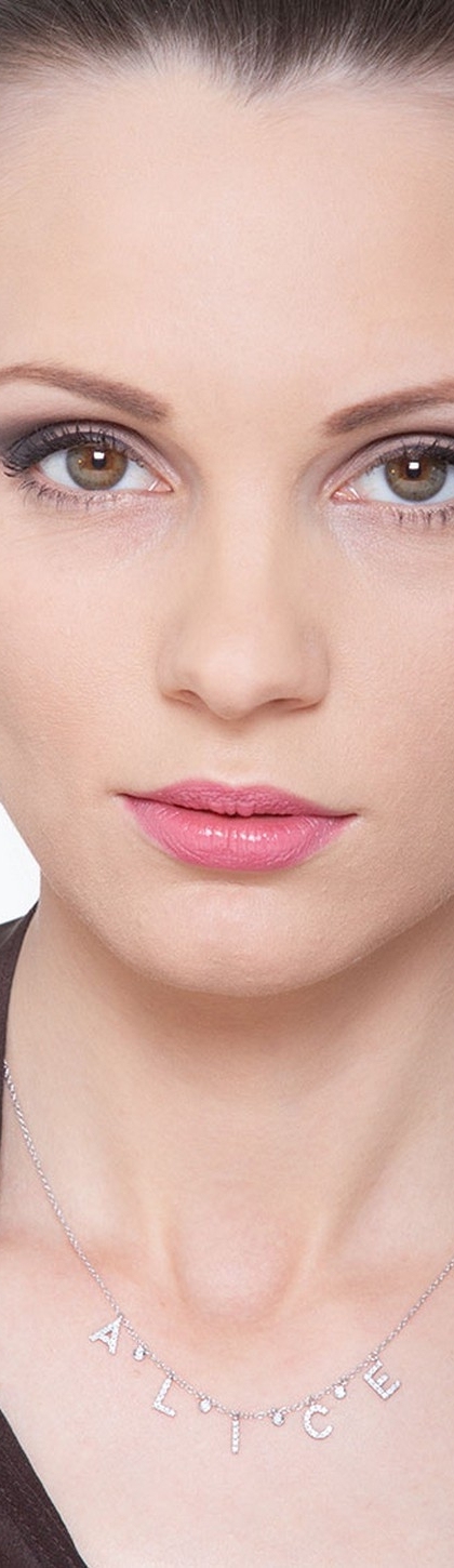Domino es una colección de joyas personalizadas: pulseras, collares, anillos y pendientes con letras en oro y diamantes