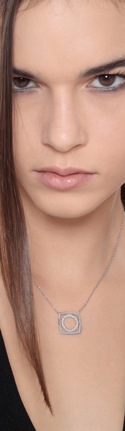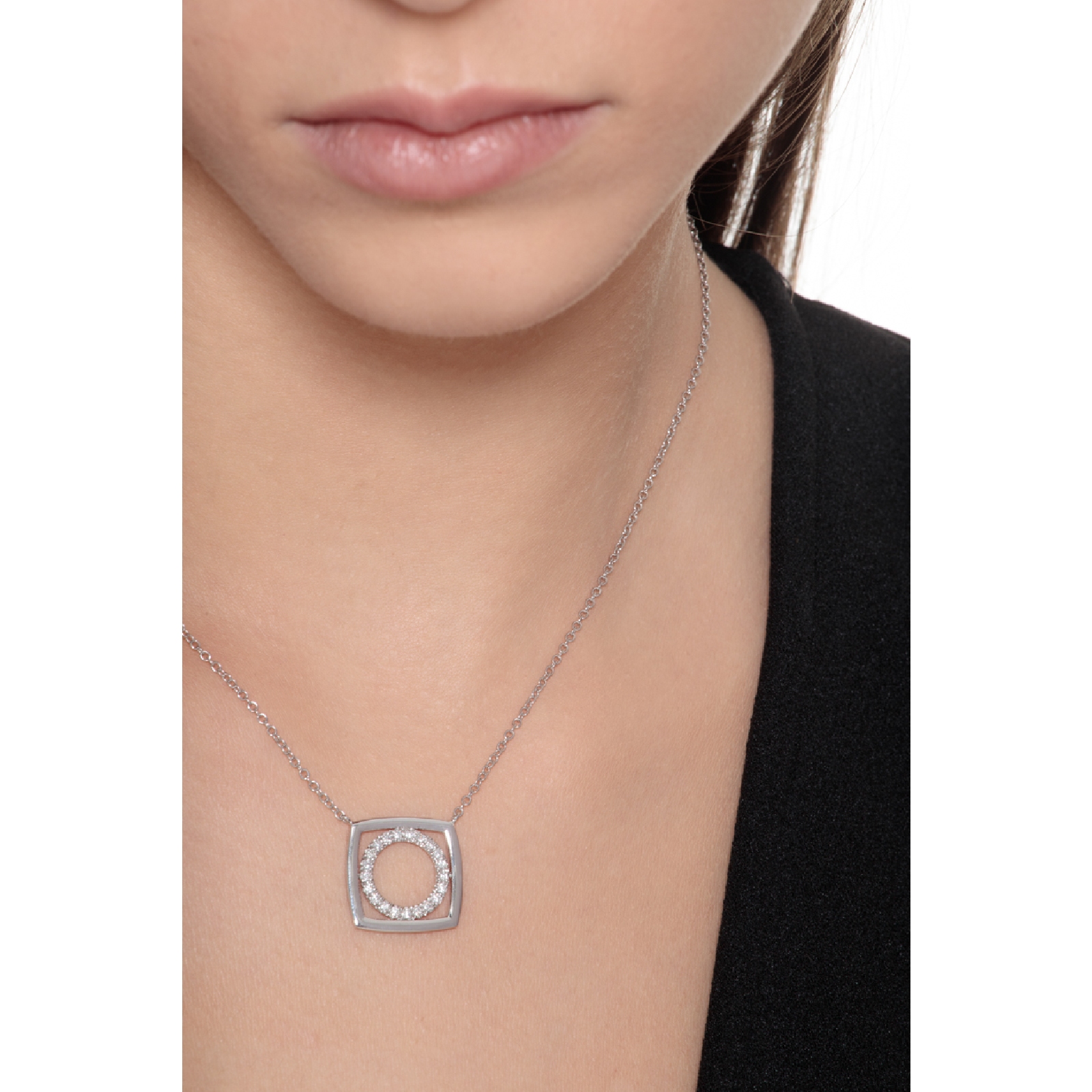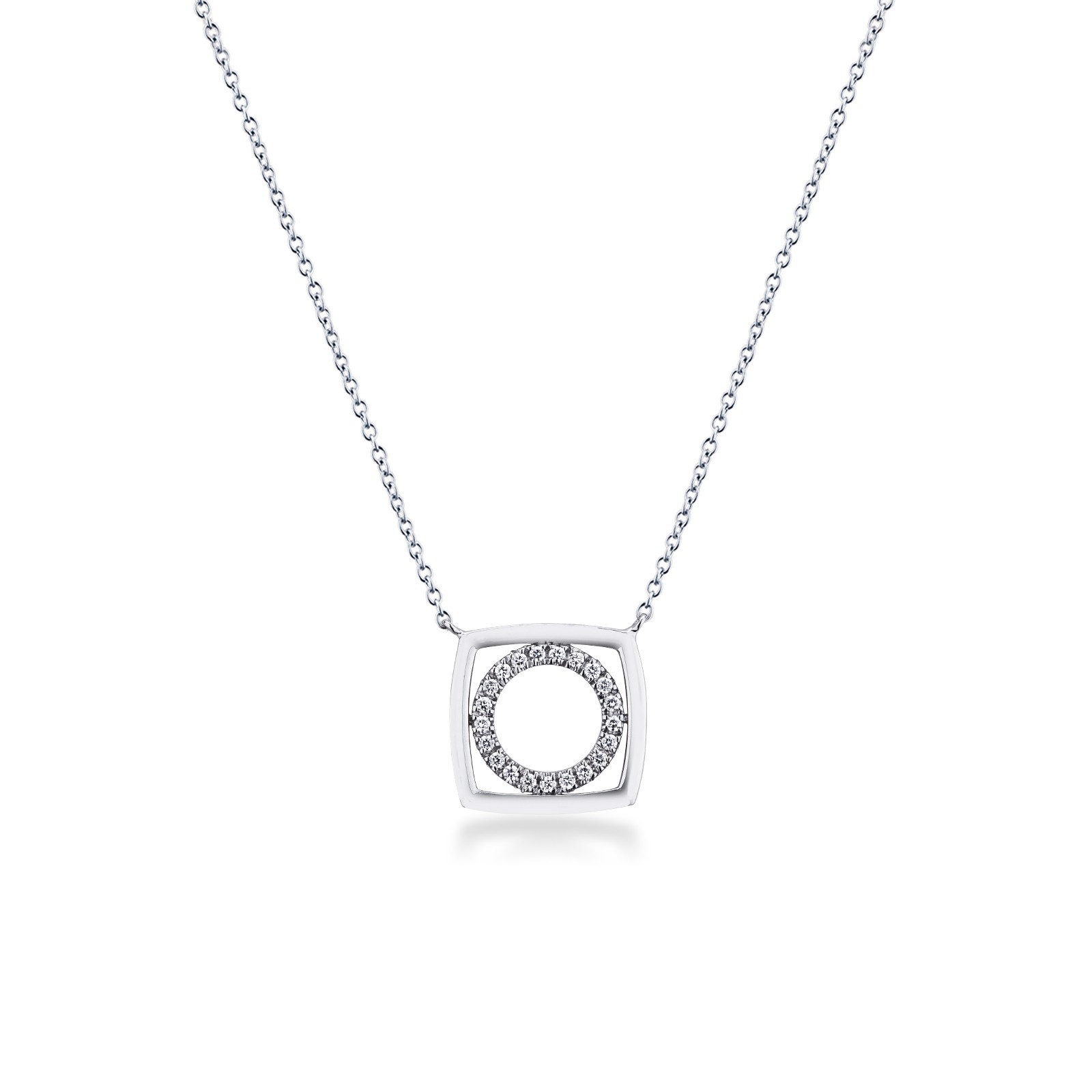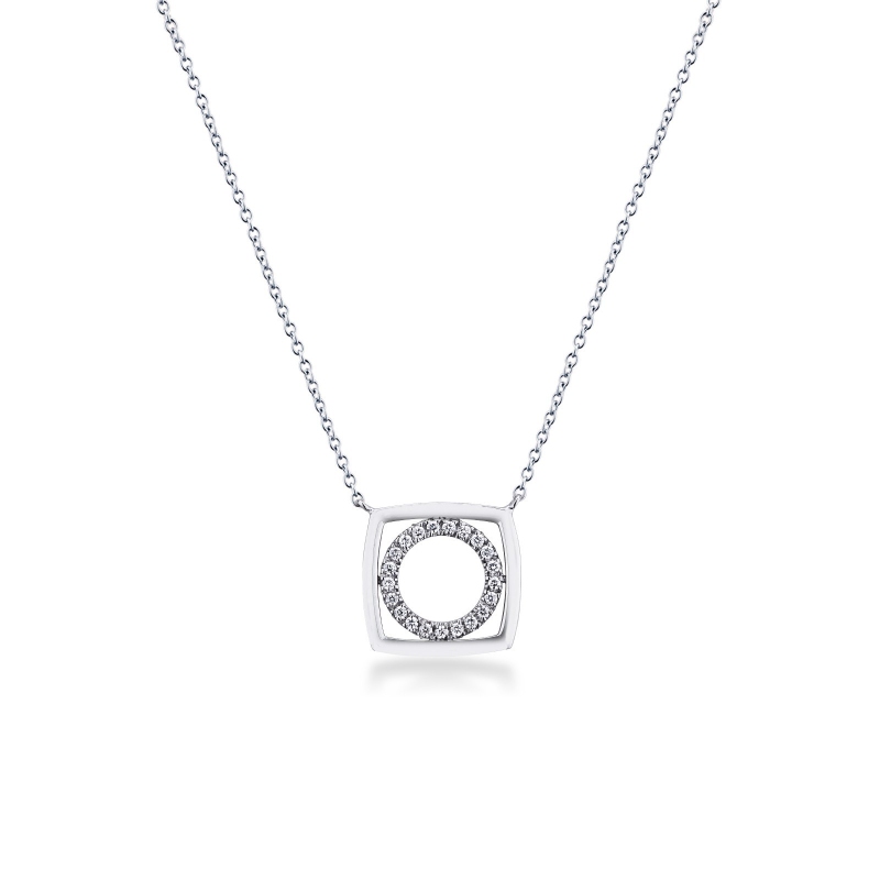 Collar Rolo en Oro Blanco 18k con Colgante Cuadrado y Diamantes