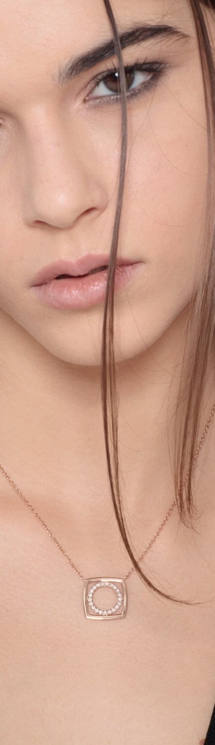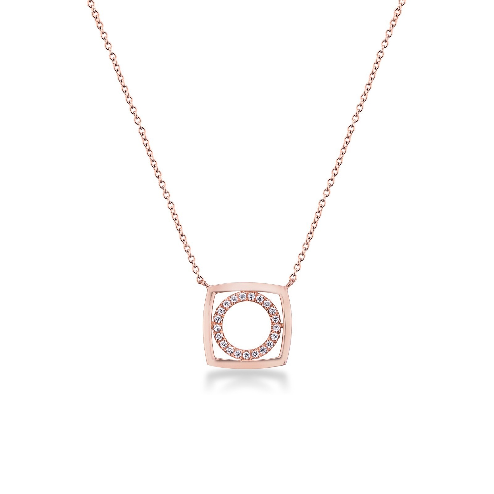 Collar Rolo en Oro Rosa 18k con Colgante Cuadrado y Diamantes
