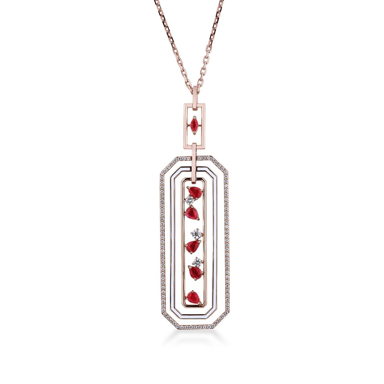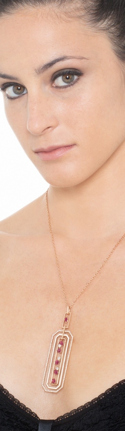 Collar Rubíes Gota & Diamantes Oro Rosa 18k