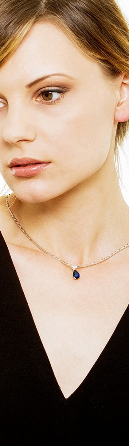 Collar semi-rígido oro blanco 18k con segmentos con zafiro azul