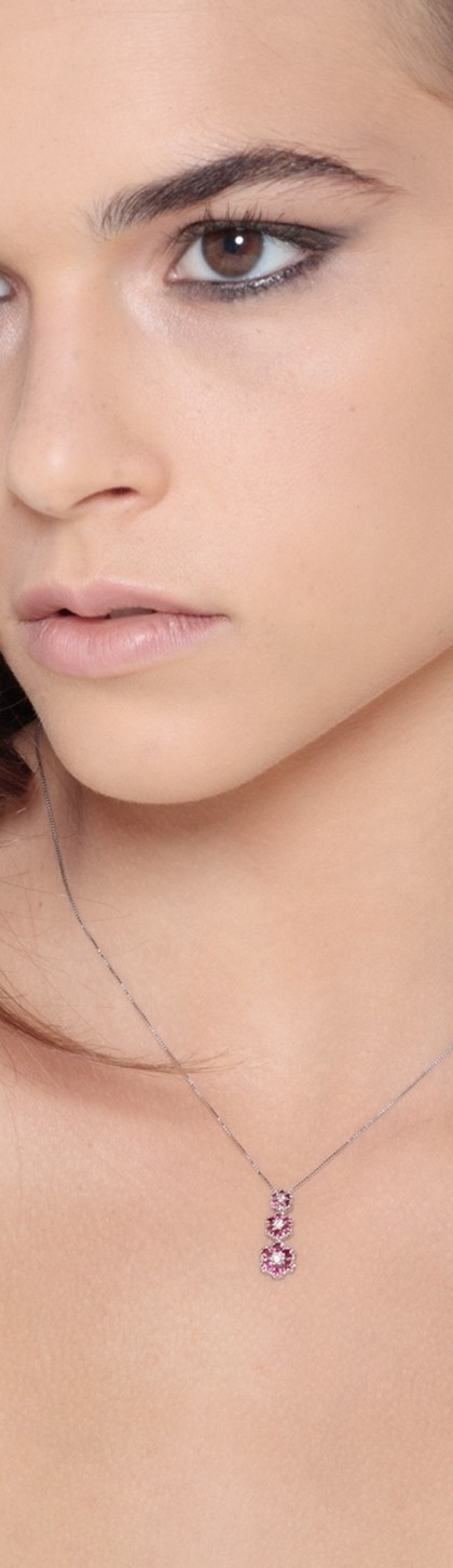 Collar trilogy en oro blanco 18k con tres flores rubies
