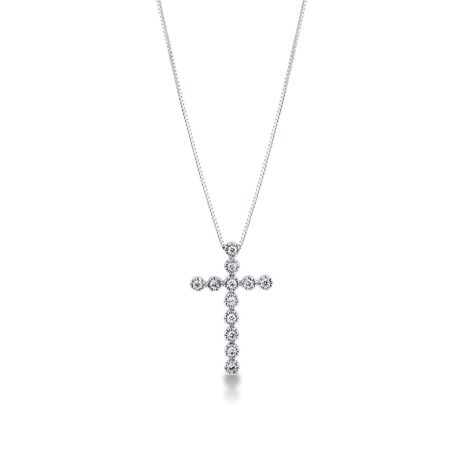 Collar con colgante cruz en oro blanco 18k y diamantes
